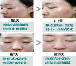 经过临床验证,祛痘效果可达到当天脸不油,痤疮颜色减淡,3天后不再有新痘长出,7天成功祛痘,2周消除痘印无疤。