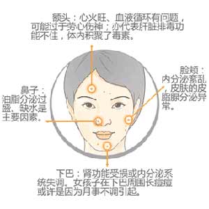 痘痘多发部位病因示意图