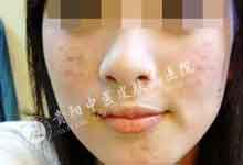 合肥淮大皮肤病医院祛痘专家何斌主任接诊了该患者,诊断为脓包型痤疮。因脸上这样的惨状,她很不自信,常把自己关房间里,同学聚会也不参加...从这个女生的诉说中,常主任还得知了她此前在别处求医后治疗无效的无奈。
